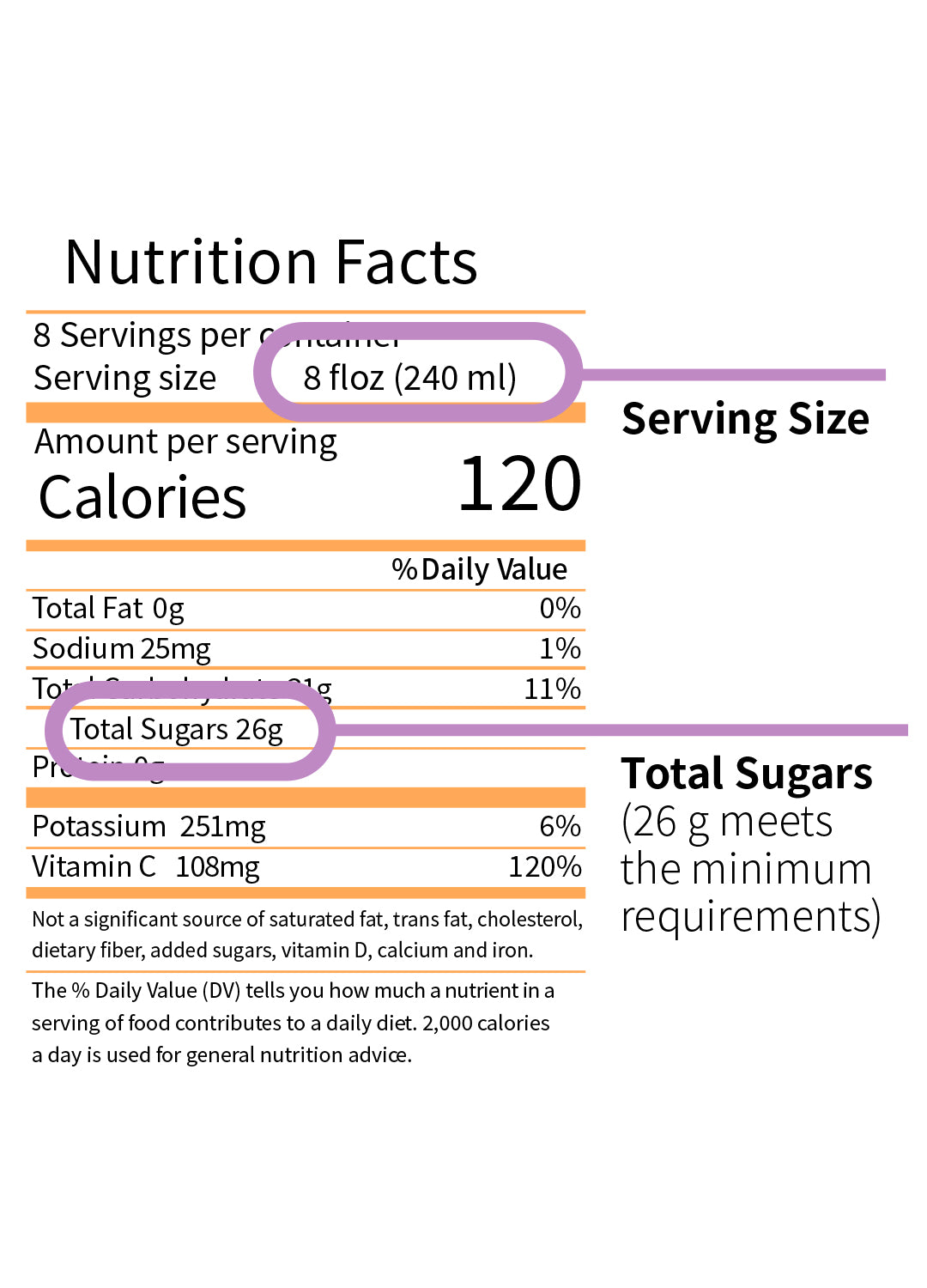 | Listed serving size | Minimum total sugar |