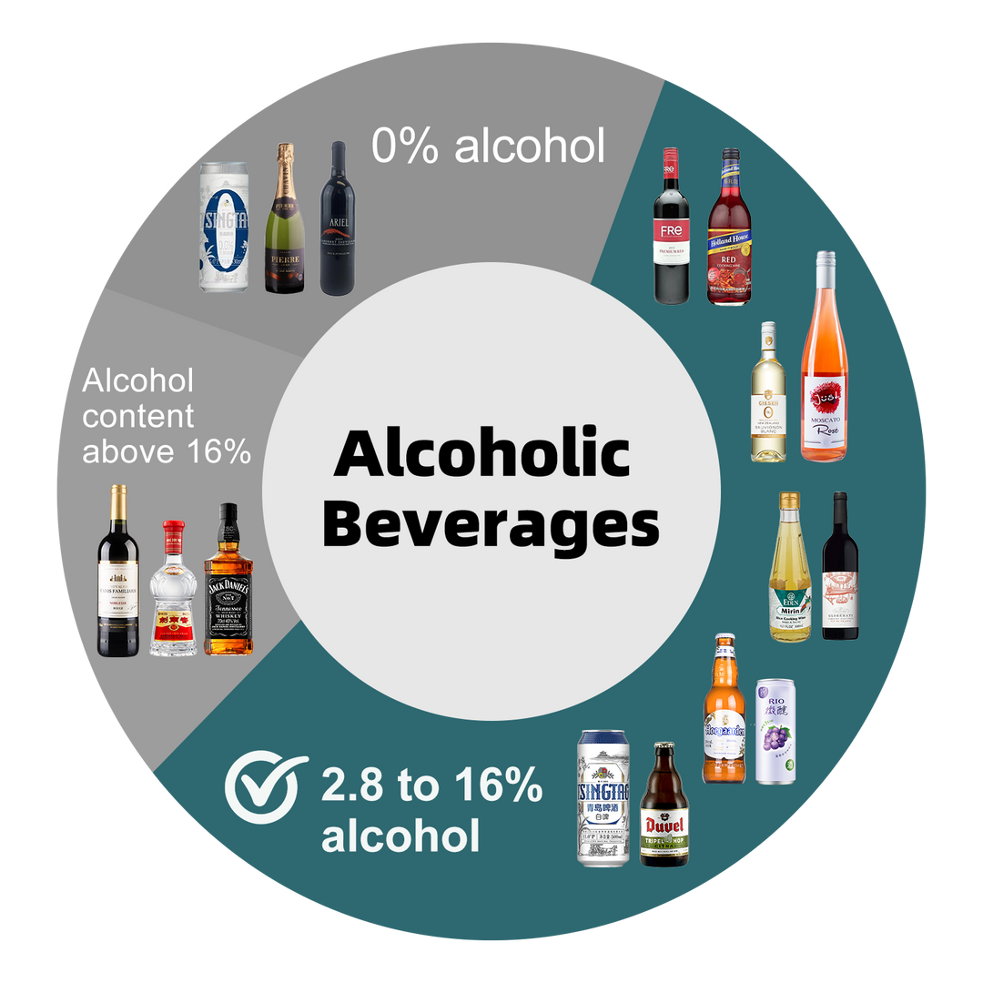 When using wine/beer/seltzer, keep overall ABV within 2.8–16%.