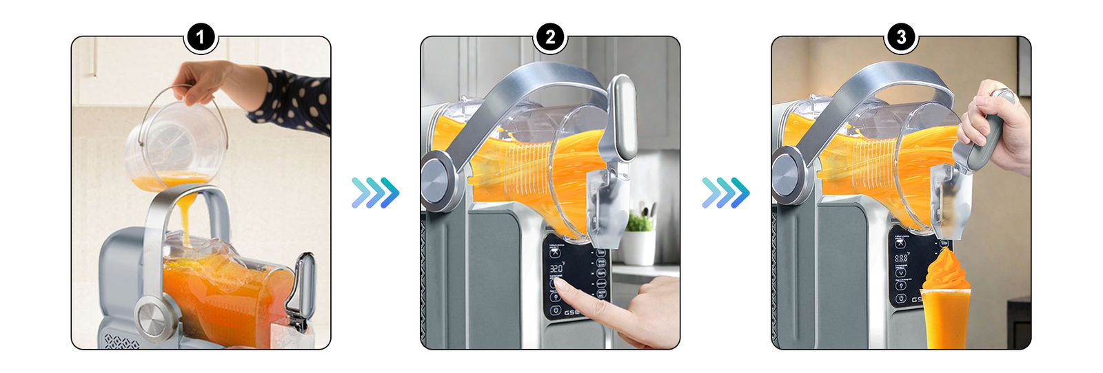 Switch presets for perfect texture: Slush • Spiked • Frozen Juice • Milkshake • Frappé.